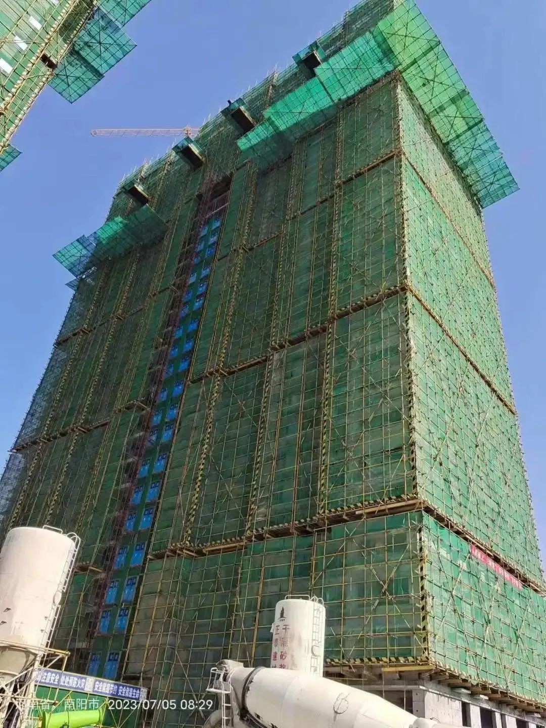 19号楼正在进行十二层顶板钢筋绑扎施工