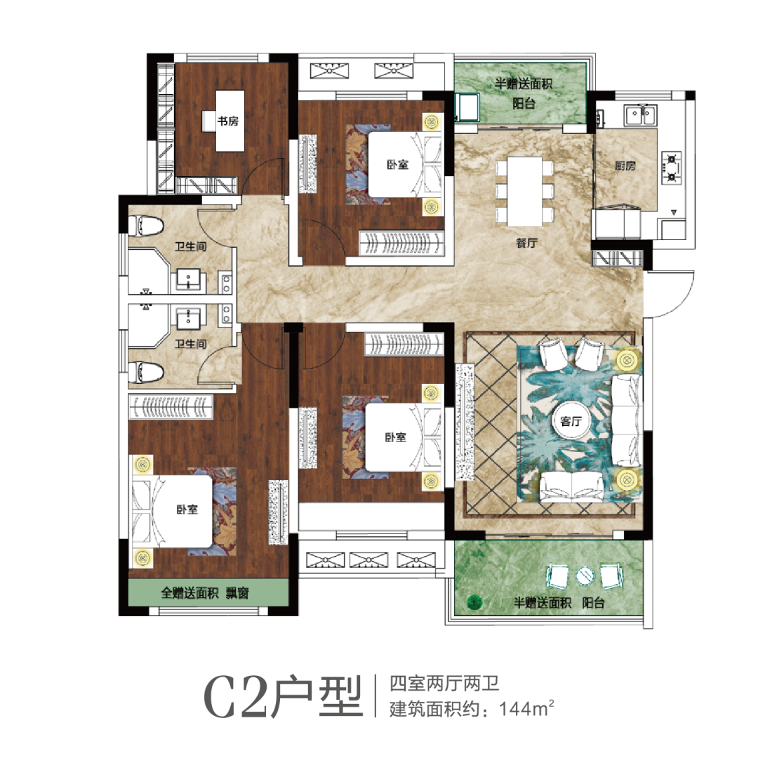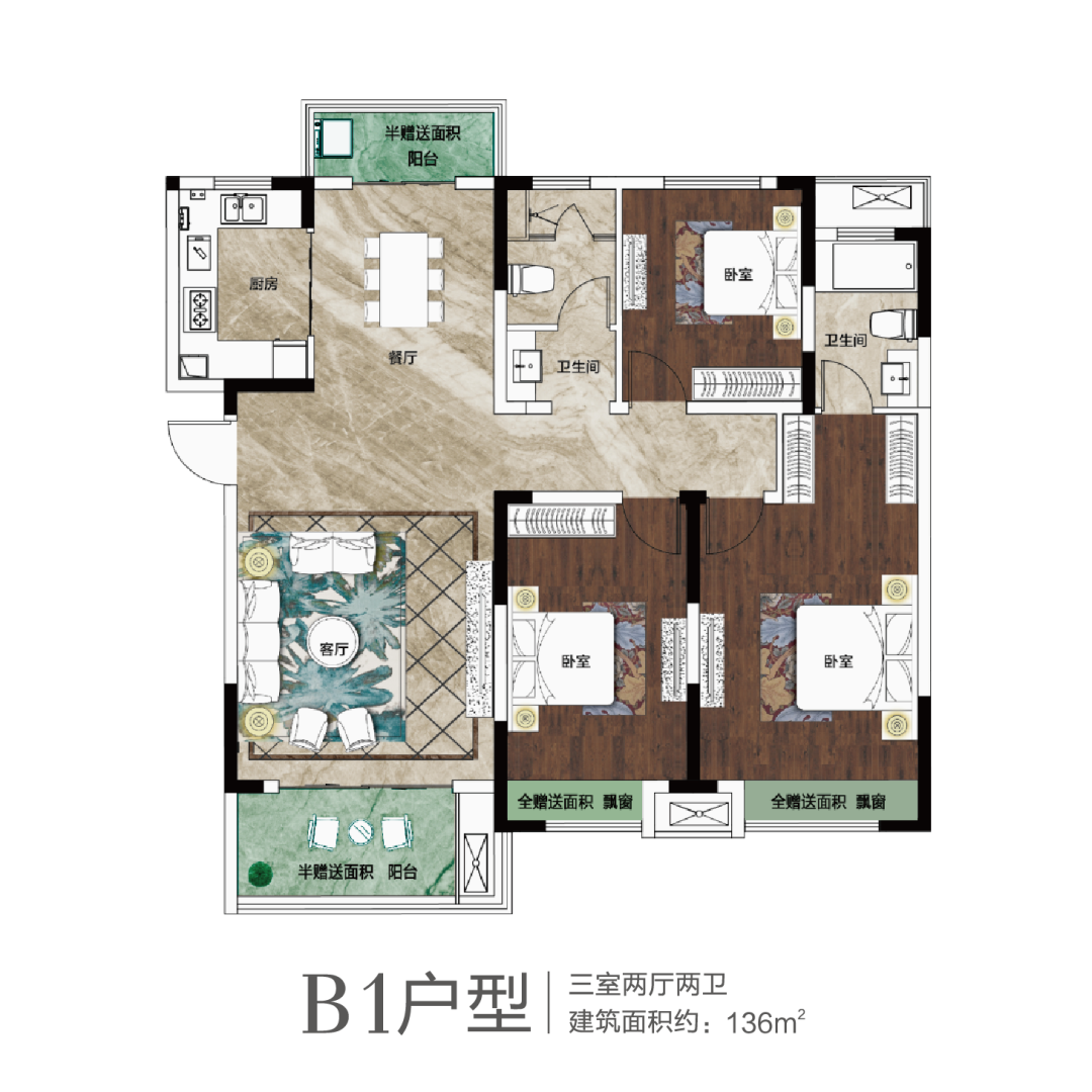 整洁的园林,修剪整齐的树冠,绿意繁茂的草坪,休闲小品……彰显着未来的生活意趣。