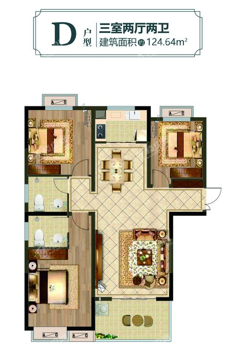 建面约80-124平宜居美宅,双气入户,醇熟配套,繁华生活圈,2020年底交房;