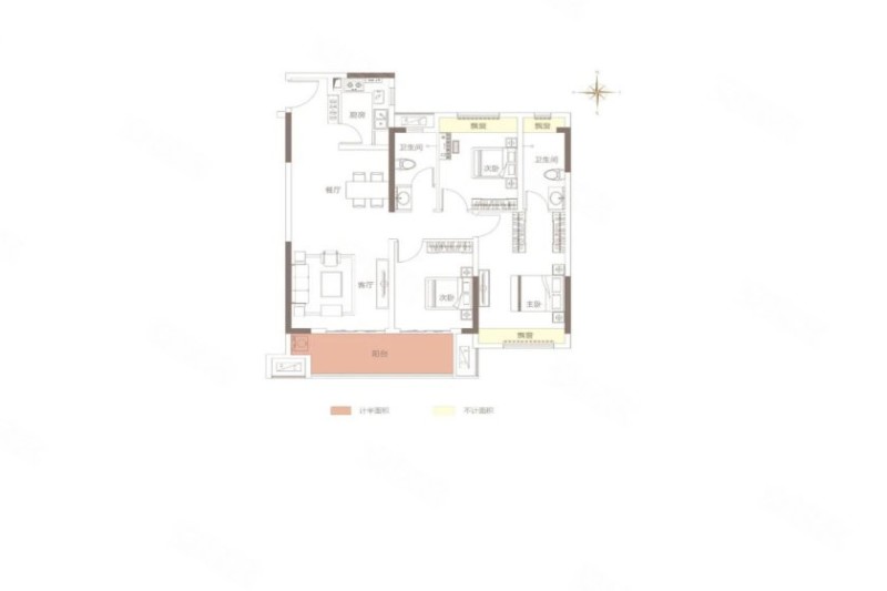 户型方正,南北通透,自在生活清新享受, 超阔阳台紧连客厅,空间运用更自由,南北双阳台,一面给风景一面给生活,餐厨合理动线规划,每一餐的幸福都用心对待。